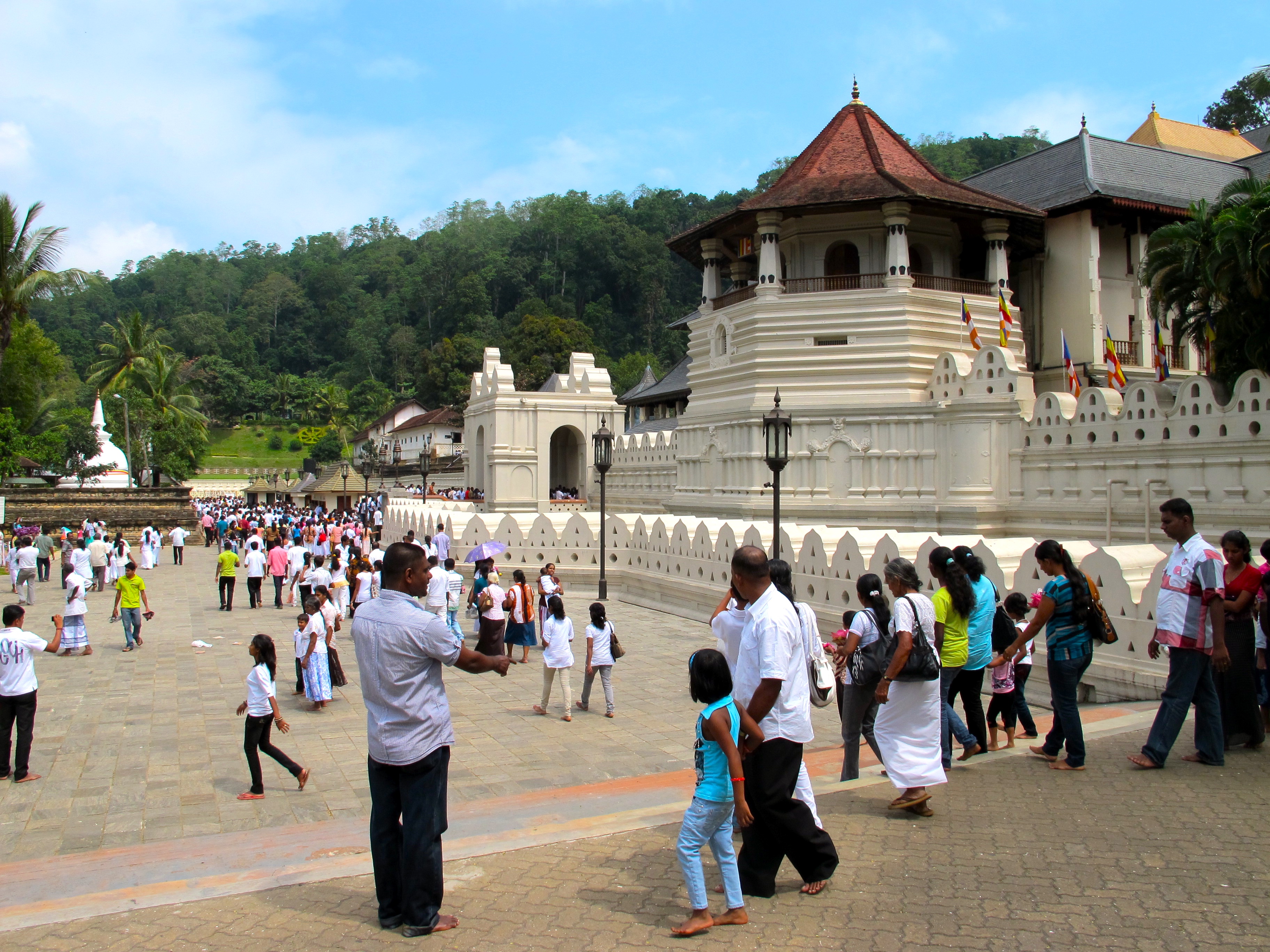 [People stream by to make offerings at the Temple of the Tooth, Kandy]