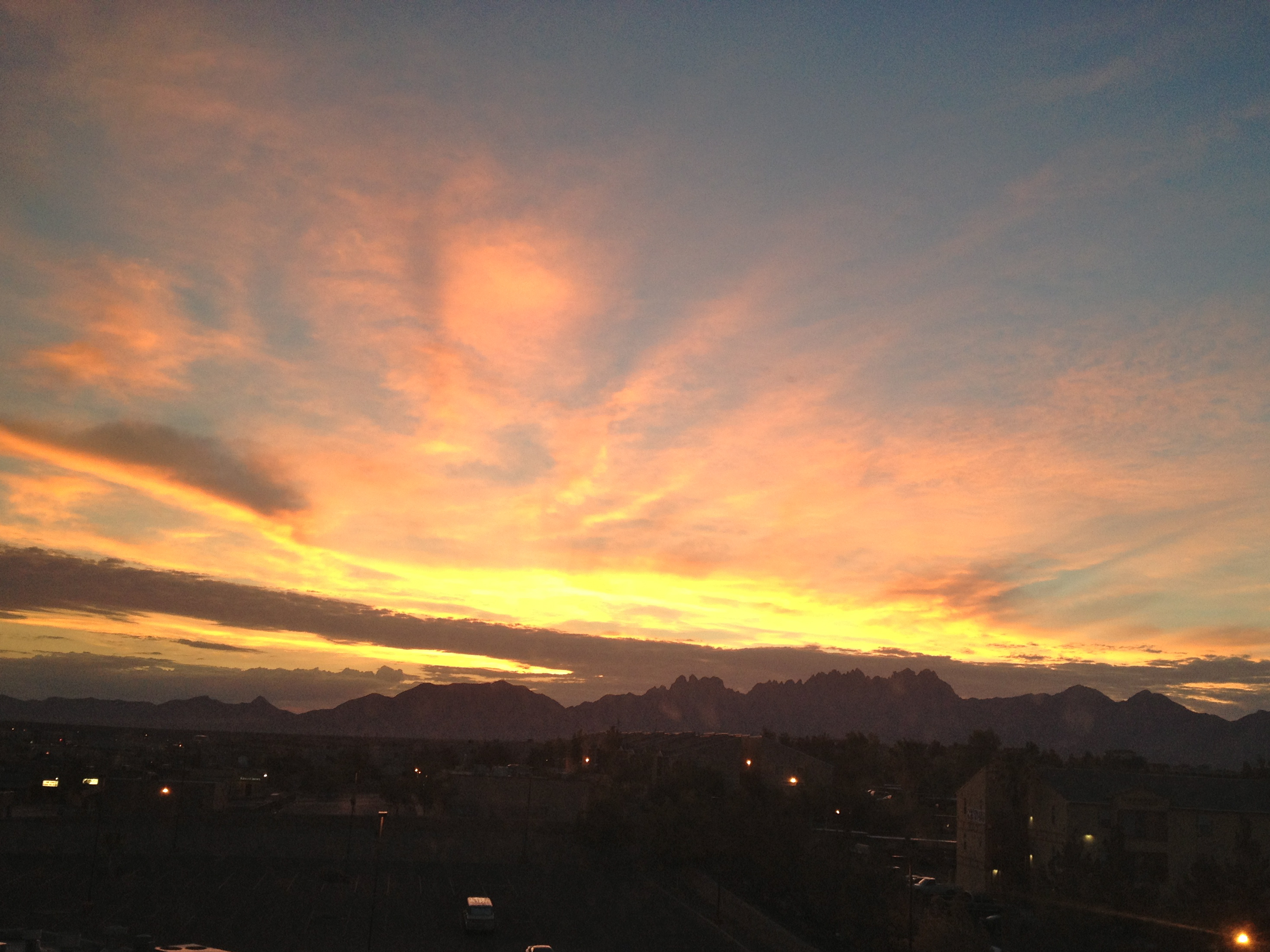I was on the top floor of my hotel in Las Cruces, and set my alarm for 6am both mornings to watch the sun rise over the mountains.